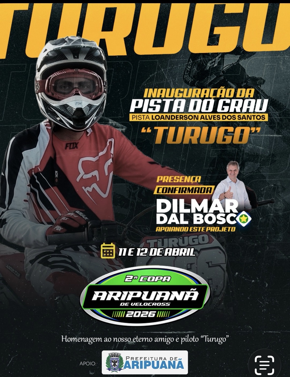 Um dos momentos mais aguardados desta edição será a inauguração oficial da “Pista do Grau”, que receberá o nome de Pista Loanderson Alves dos Santos, em homenagem ao piloto conhecido como “Turugo”, figura lembrada com carinho pela comunidade esportiva.